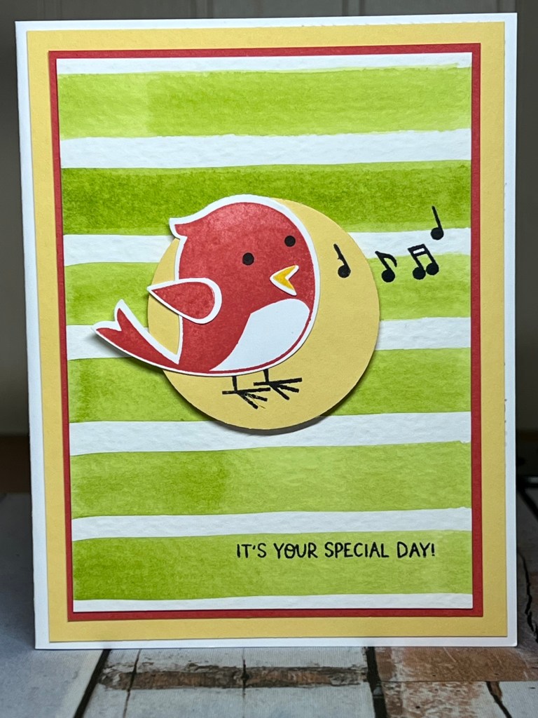 2. So so so sweet! I love this little bird and the beautiful stripes you created in the background. Such a HAPPY card! Thanks for hopping with us today, Pam! ♥